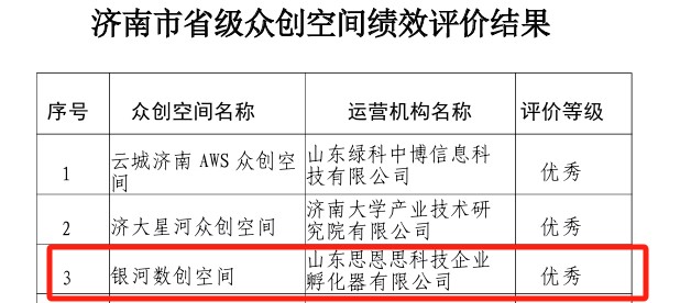 濟(jì)南科創(chuàng)投集團(tuán)科技企業(yè)孵化載體銀河數(shù)創(chuàng)空間獲評(píng)省級(jí)優(yōu)秀等次