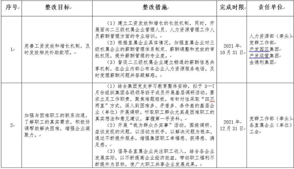 濟(jì)南產(chǎn)業(yè)發(fā)展投資集團(tuán)有限公司民主評(píng)議問題整改重點(diǎn)承諾事項(xiàng)